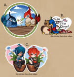 C. by HIKARISORA1 -a pair of 2" stickers with clear edges. They come as a combo of two stickers of lil guys in lil flower pots with their matching flower. All profits of this item go to Hikki and this item will not be restocked.