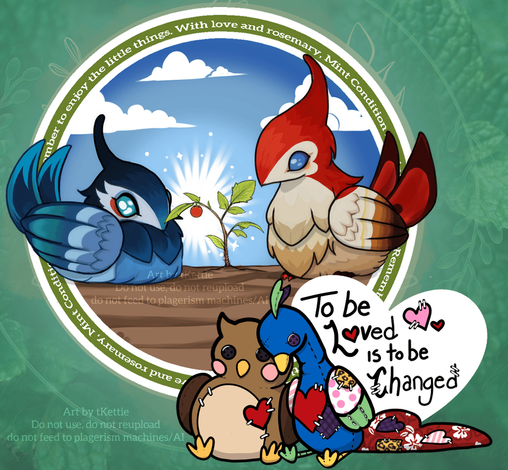 A. 2.5" Crownfinch Sticker originally from the Mint Condition Fanzine. The ring around this sticker still says "Remember to enjoy the little things. With love and rosemary, Mint Condition." This item may not be restocked, and will not have that on it in future prints if it is.